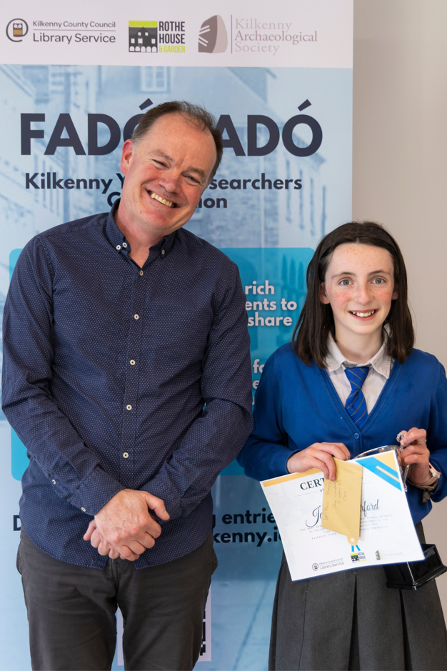 Cóilín Ó Drisceoil with Primary School 1st place winner - Jane Comerford, St. Colman's NS, Clara