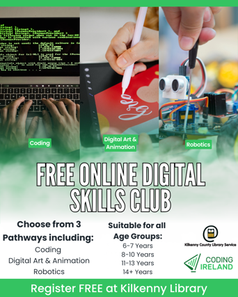 As a library member you can learn how do coding, robotics and Digital Art an Animation for free. There are self-learning courses available from 6 years of age up. It is also a great opportunity for parents and guardians to learn and spend time with their children. There is lots to learn. Keep an eye out for supplementary events happening on your library. The courses are accessible online and you can learn at your own pace.